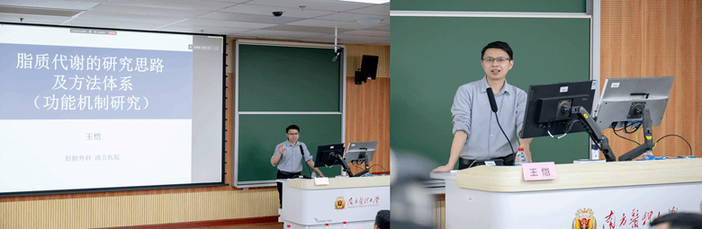 王恺老师以《脂质代谢的功能机制研究进展》为主题,为全体参会者带来了一场干货满满、实用性强的学术盛宴。王恺老师毫无保留地分享了自身积累的丰富研究经验与宝贵实践心得。报告中,他不仅系统梳理了脂质代谢领域的核心研究思路与前沿发展脉络,还聚焦当前领域内的研究热点与关键突破方向展开深入解读。尤为值得关注的是,针对科研工作者普遍关心的 “如何精准筛选脂质”以及 “后续研究如何有序推进” 等核心问题,王恺老师结合具体研究案例,进行了条理清晰、可操作性强的详细阐释,为在场科研人员与青年学子提供了极具价值的科研指引,助力大家少走弯路、精准发力。报告中一个暖心的细节是,王恺老师专门表达了对南方医科大学中心实验室的诚挚谢意,高度认可实验室在其科研工作开展过程中提供的关键支撑与全方位助力,称赞中心实验室为科研创新提供了坚实保障。