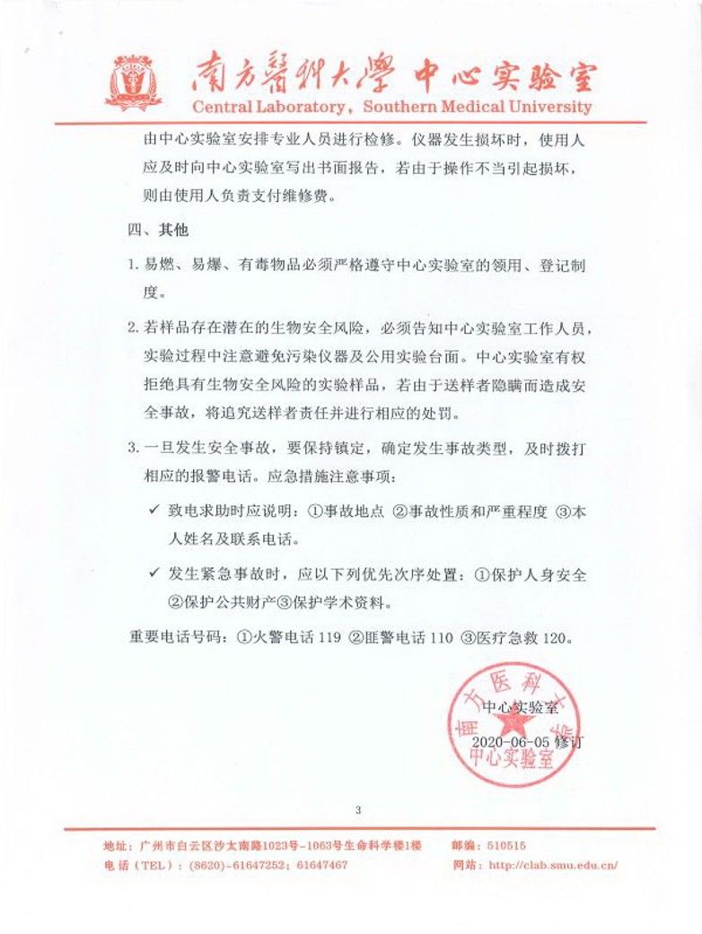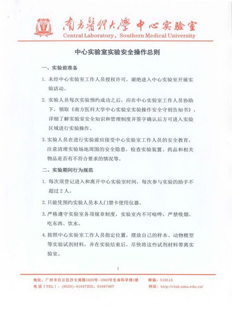 中心实验室实验安全操作总则