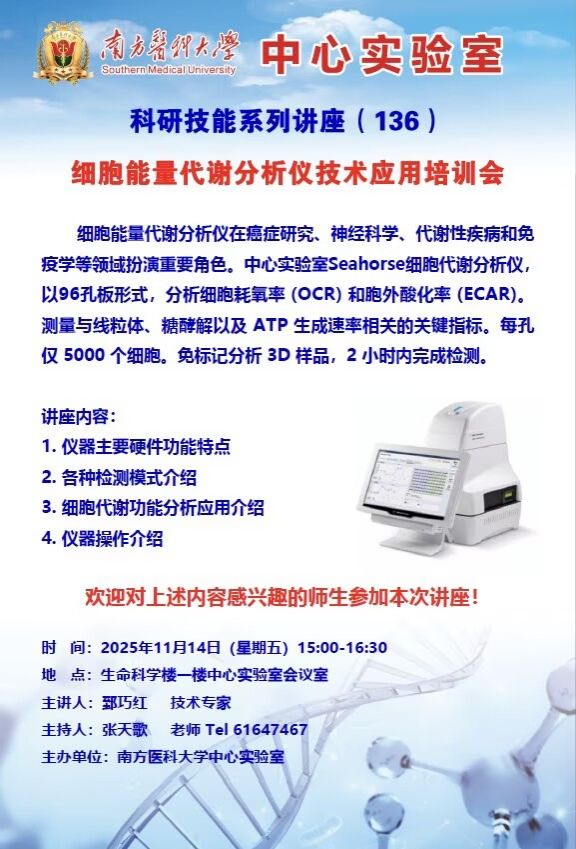 科研技能系列讲座(136)--细胞能量代谢分析仪技术应用培训会